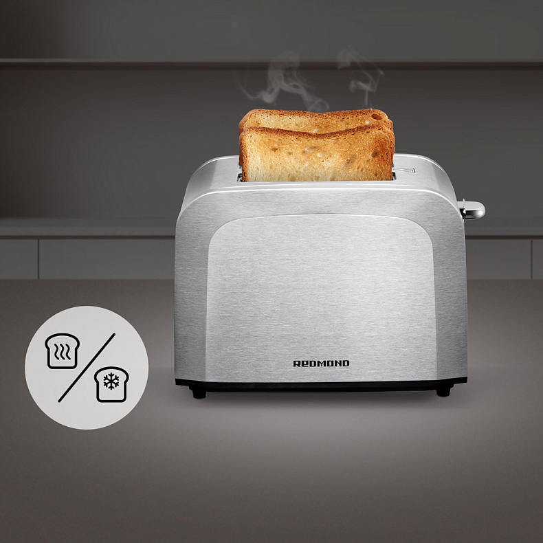 Тостер поджарит хлеб как до легкого золотистого цвета, так и до хрустящей коричневой корочки — его мощности на это хватит. Поджаривает быстро, размораживает бережно, разогревает равномерно.