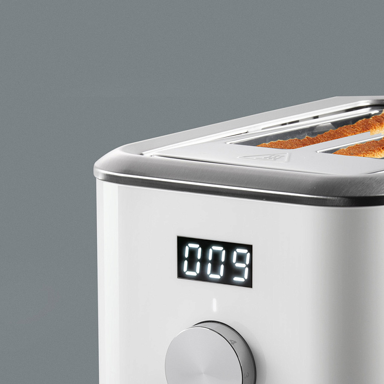 Таймер на дисплее покажет, когда тосты будут готовы. Это особенно удобно, если вы готовите из замороженного хлеба, который нужно сначала разогреть.