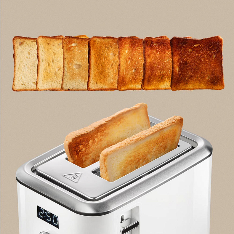 Румяные тосты с хрустящей корочкой или хорошо поджаренный черный хлеб к супу? Выбирать вам, а 7 степеней поджаривания позволят экспериментировать с разными сортами хлеба и готовить тосты на любой вкус.