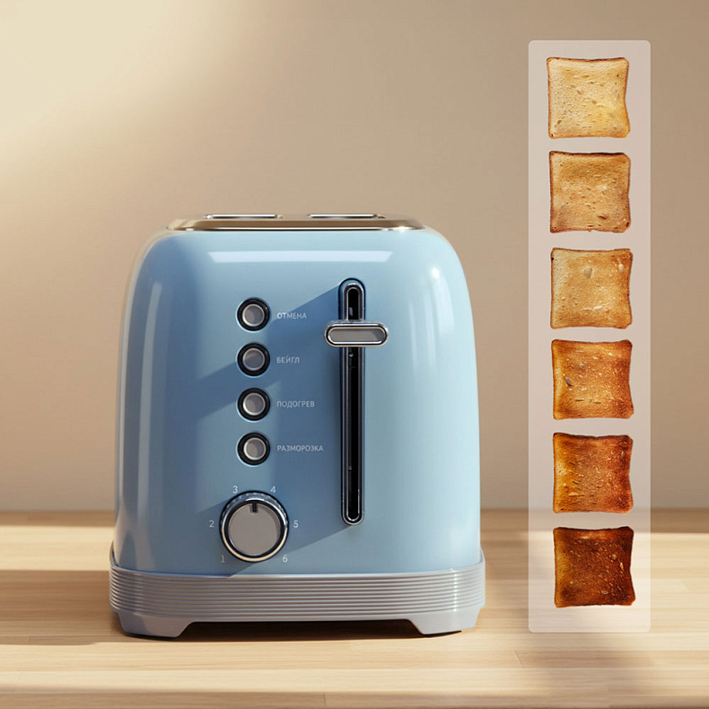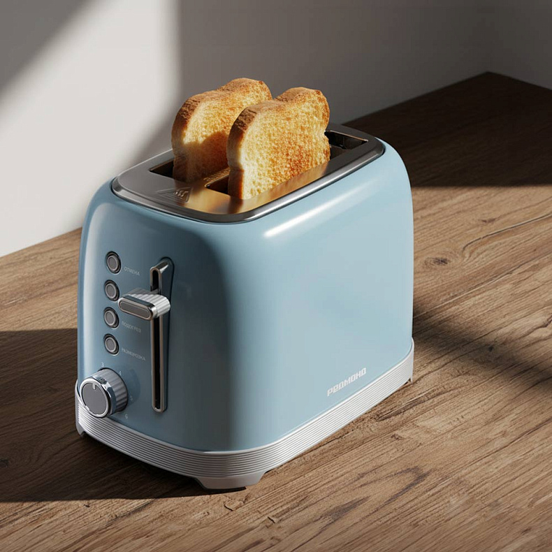 Тостер РЕДМОНД T910 в оригинальном дизайне ретро идеально обжарит хлеб для вкусного завтрака. Вы можете регулировать степень поджаривания — от светлой до темной корочки. Прибор также позволяет размораживать хлеб, подогревать тосты и поджаривать бейглы. При приготовлении ломтики центрируются, а после — автоматически приподнимаются.