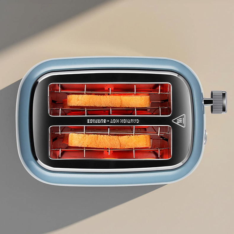 Тостер центрирует ломтики после загрузки, чтобы они обжарились равномерно. По готовности они автоматически приподнимутся — хлеб точно не подгорит.