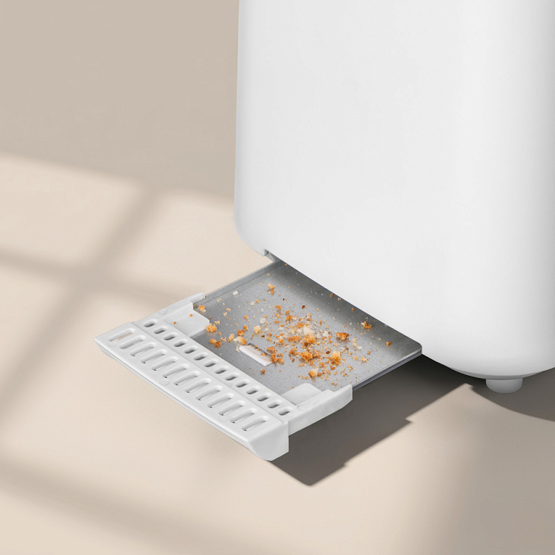Встроенный съемный поддон эффективно собирает крошки. Его легко извлечь для очистки, что упрощает уход за устройством и помогает содержать кухню в порядке.