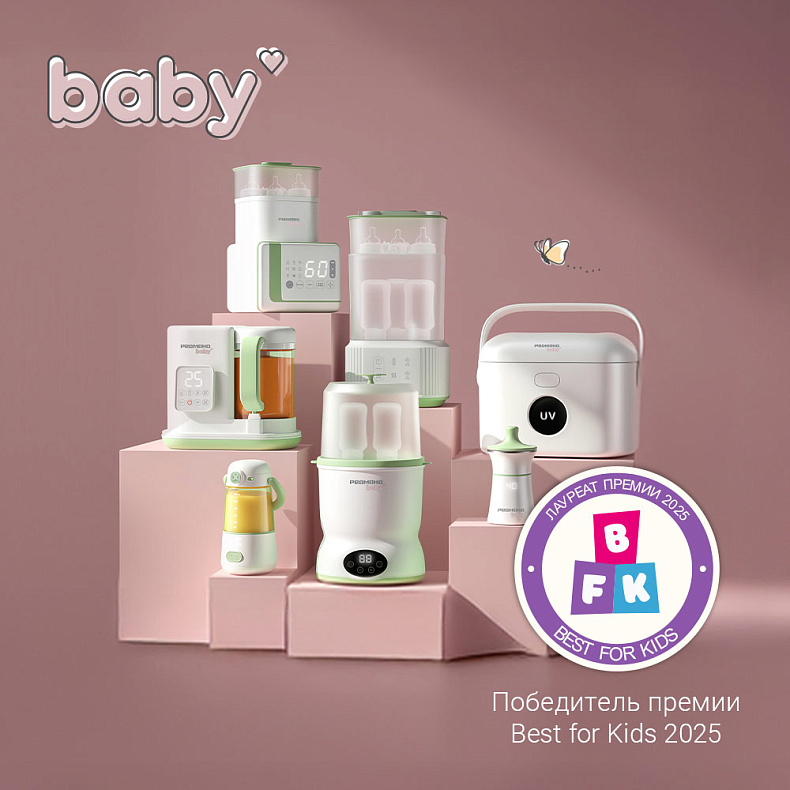 Премиальная серия РЕДМОНД Baby получила награду Best for Kids 2025. Стерилизатор BC5201 продуман до мелочей, чтобы обеспечивать гигиену и безопасность бутылочек, делая заботу о здоровье малыша легкой и удобной для родителей.