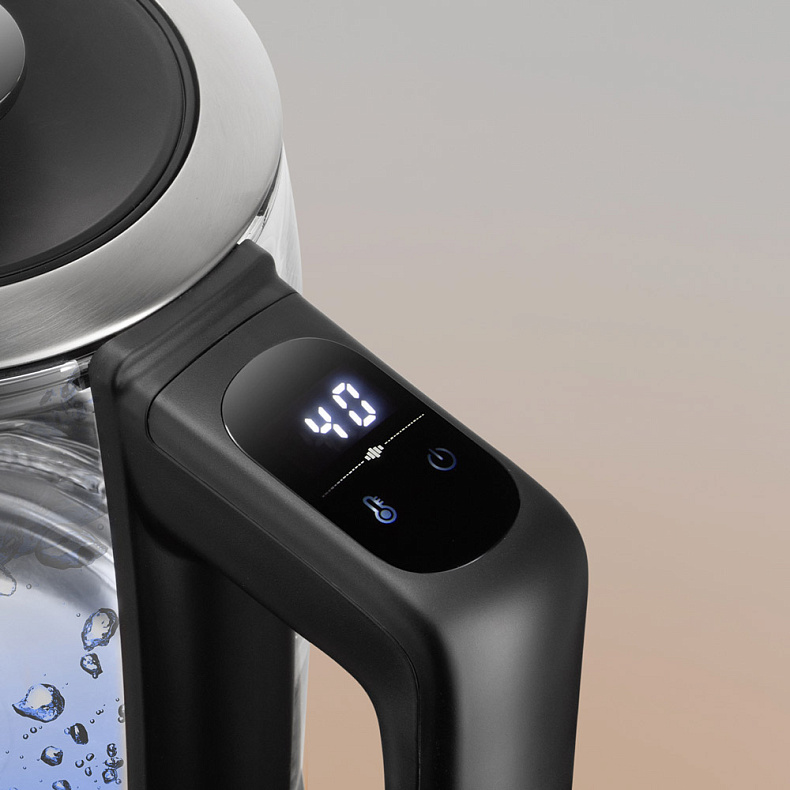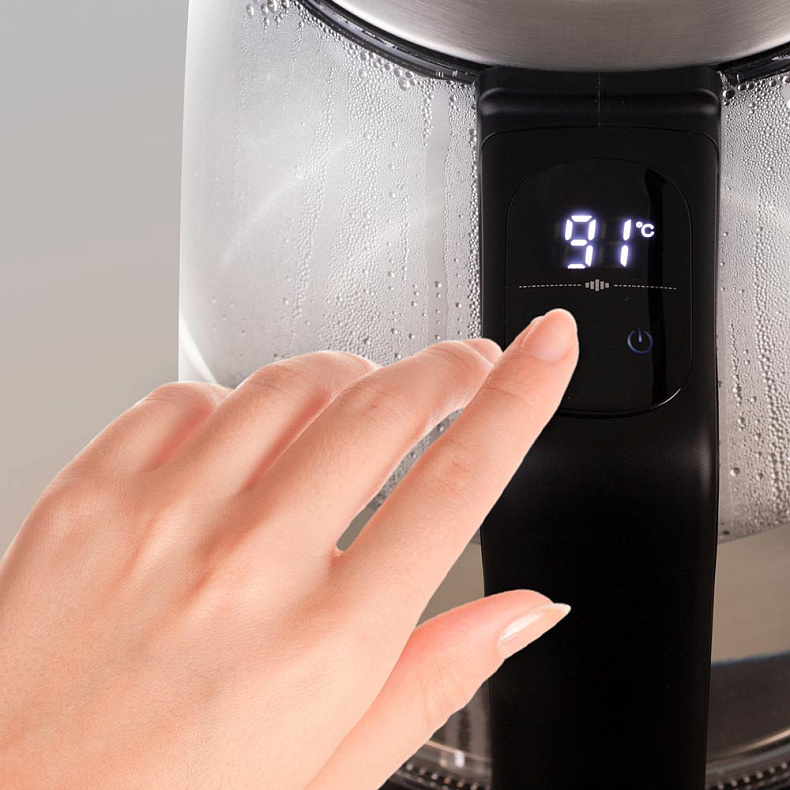 Нескольких легких касаний хватит, чтобы включить чайник, установить температуру нагрева, включить или отключить звуковые сигналы. Сенсорная панель управления удобна и интуитивно понятна, поэтому регулировать работу устройства будет просто.