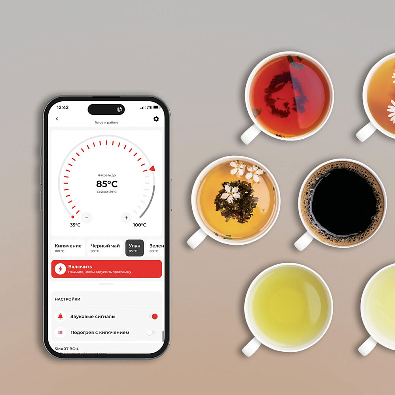 Вы можете настраивать температуру нагрева, чтобы приготовить авторский чай или детское питание. Установите нужное значение с точностью до 1 °C в мобильном приложении R4S REDMOND, чтобы добиться идеального вкуса готового напитка.