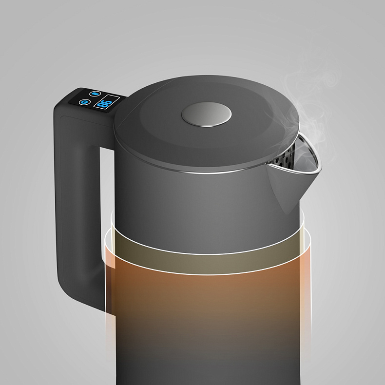 Имеет двойные стенки и работает как термос: дольше сохраняет температуру воды. Внешняя часть чайника совсем не нагревается, поэтому можно не бояться ожогов. Прибор полностью безопасен.