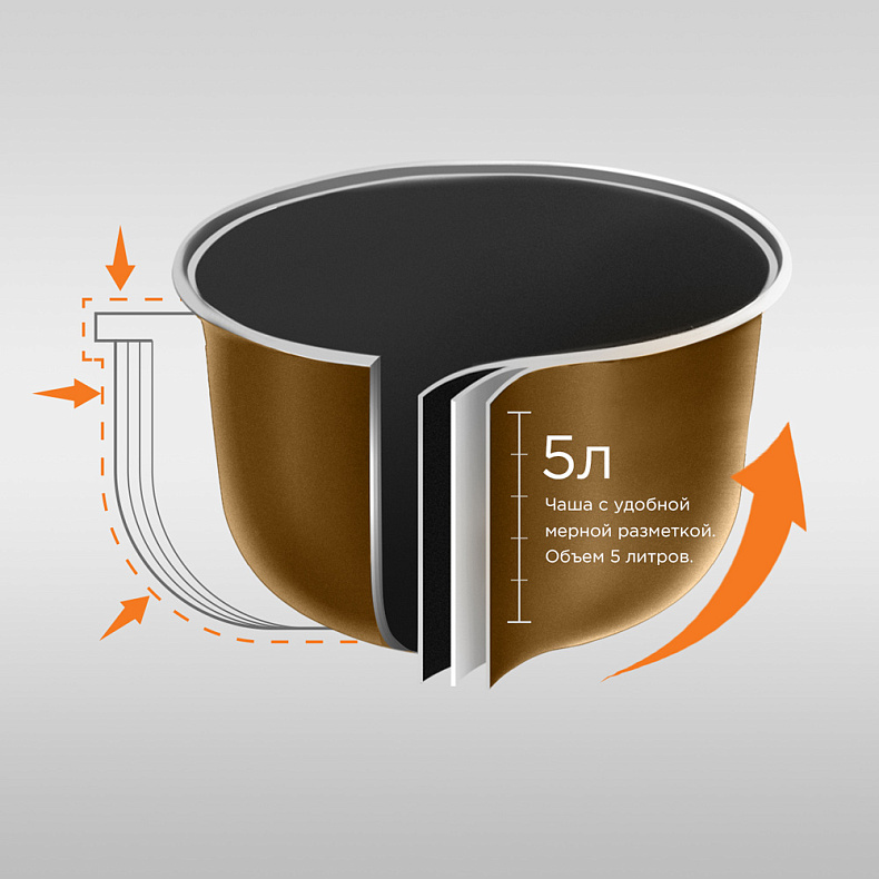 Имеет хорошие антипригарные свойства. При готовке продукты сохраняют больше полезных веществ, а 3D-нагрев помогает создать идеальную «золотистую» корочку на домашней выпечке.