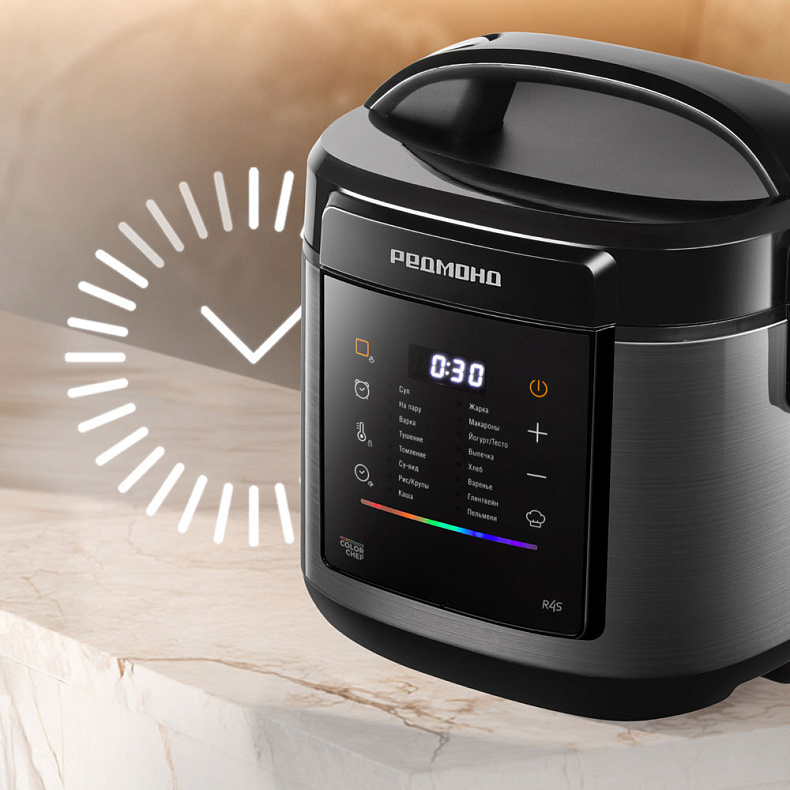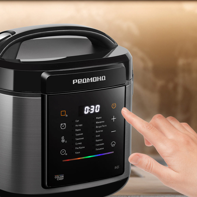 MC125S разнообразит ваше повседневное меню. Автоматические программы облегчат приготовление популярных блюд — от супов, томленого мяса и запеканок до йогуртов и глинтвейна. Эти блюда и другие вы можете приготовить по рецептам от нашего шеф-повара, которые доступны в приложении REDMOND Шеф.