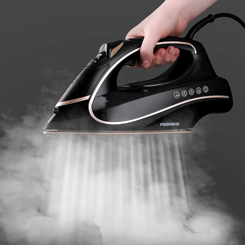 Утюг автоматически очистится от загрязнений: просто наполните его водой и нажмите соответствующую кнопку — вся накипь выйдет вместе с паром. Используйте эту функцию 3–4 раза в месяц, и устройство прослужит вам многие годы.