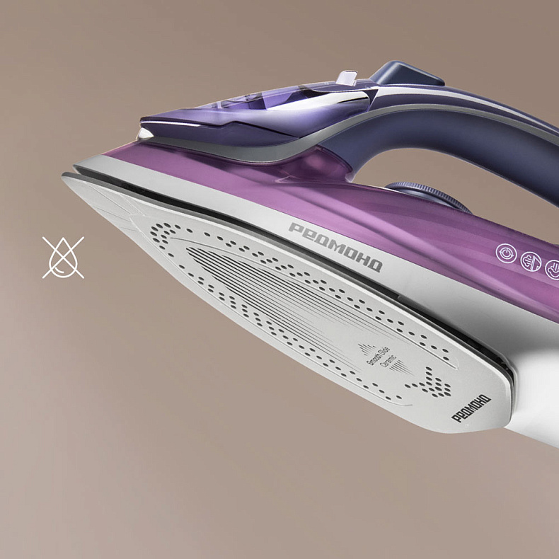 «Капля-стоп» автоматически предотвращает протекание воды при сухой глажке из отверстий на подошве утюга. Система помогает обеспечить безопасное глажение без капель воды и разводов на шелке, акриле и других деликатных тканях.