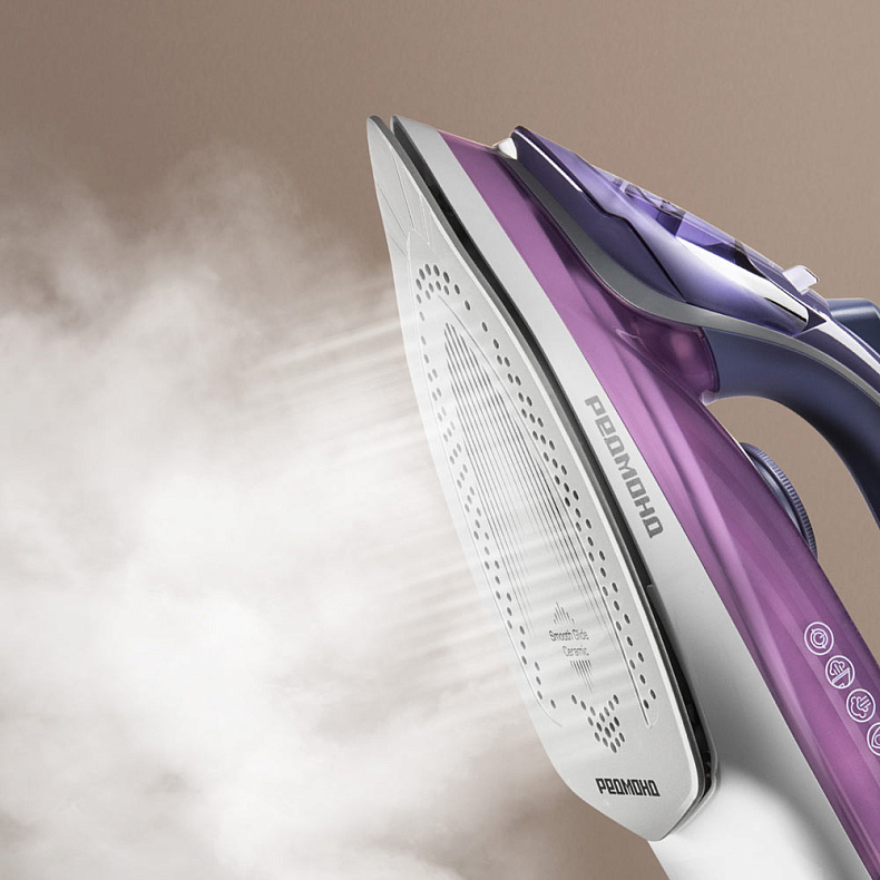 Подошва с керамическим покрытием Smooth Glide Ceramic легко скользит по ткани и отличается равномерным нагревом по всему периметру даже при невысокой температуре. А еще она проста в уходе — достаточно очистить подошву мягкой губкой после остывания.