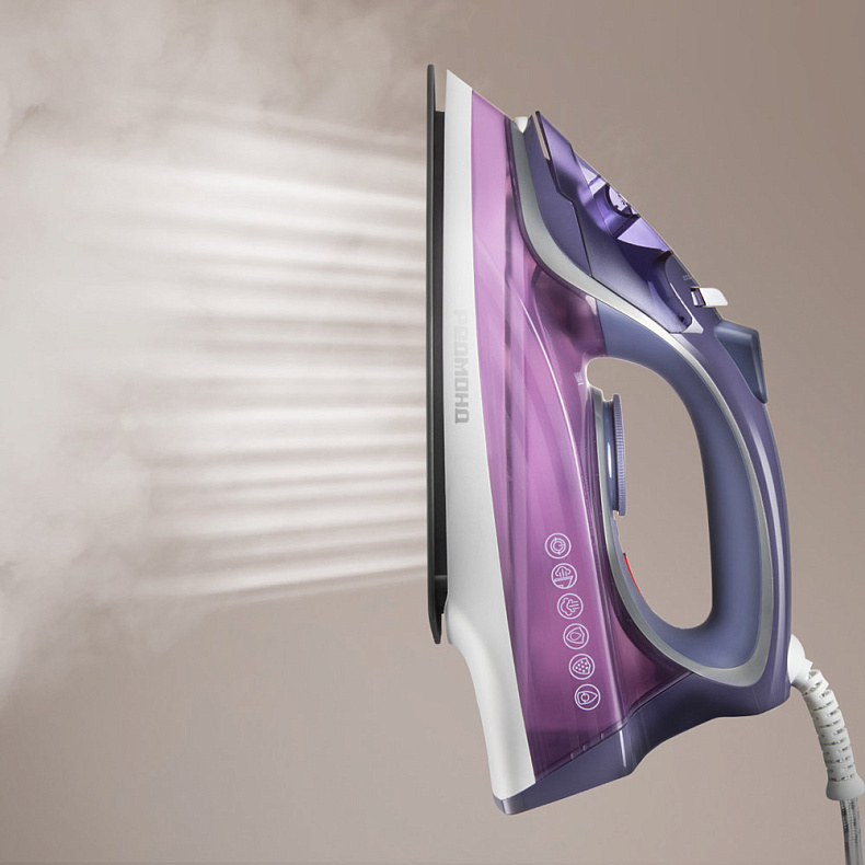 Благодаря высокой мощности 2600 Вт утюг быстро нагревается и обеспечивает интенсивную подачу пара. Это позволяет приступить к глажению практически сразу после включения прибора.