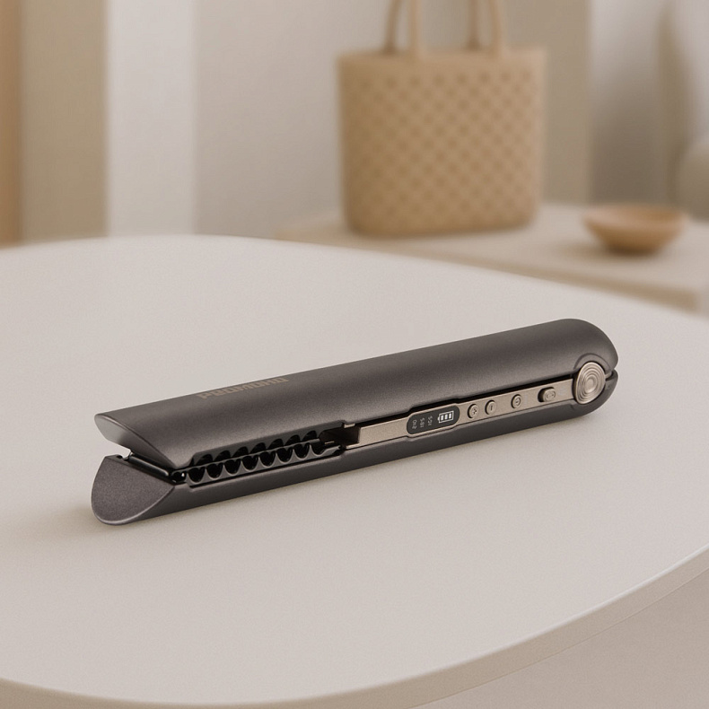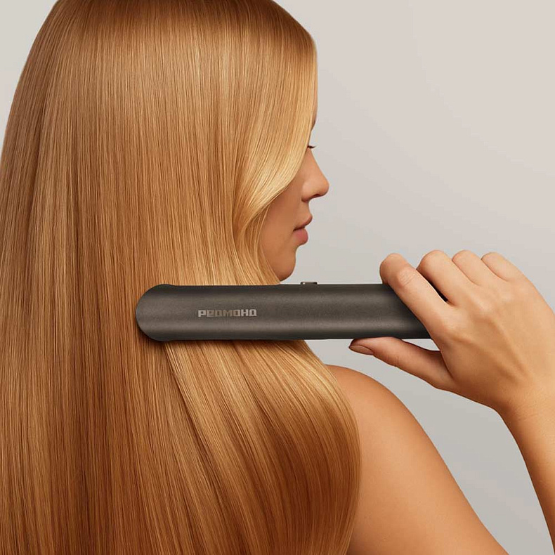 Вес выпрямителя — 332 грамма, а длина — 223 мм, поэтому его удобно брать с собой. Он легко поместится в сумке или косметичке, не займет лишнего места и всегда будет под рукой, будь то командировка или уикенд за городом.