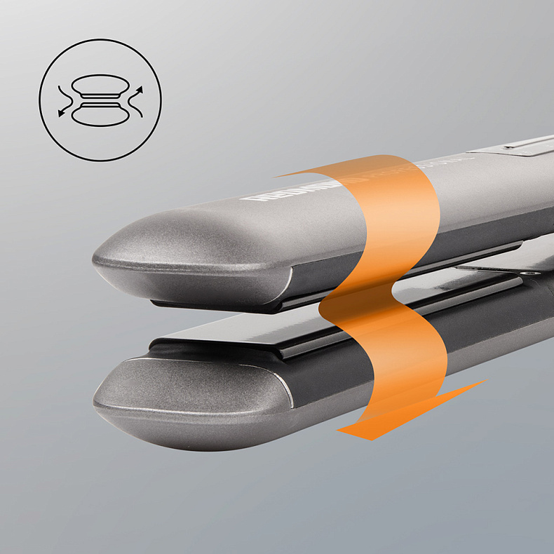 Особая технология исключает повреждение волос при слишком сильном сжатии. Пластины пружинят при сдавливании, бережно прижимая пряди.
