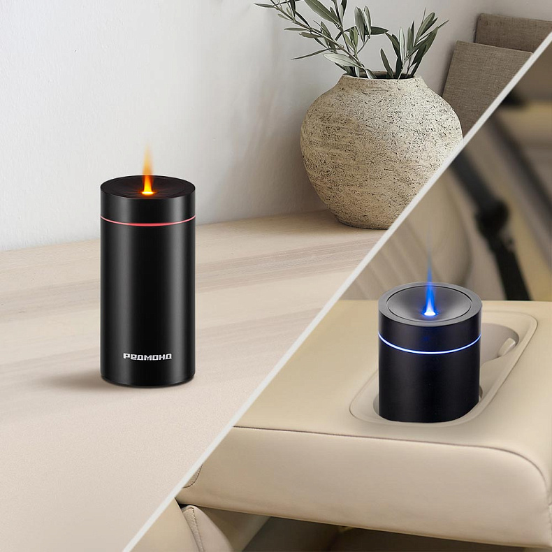 Мощность аккумулятора 2000 мА*ч — диффузор будет беспрерывно работать до 5 часов без подзарядки. Он компактный, и его удобно брать с собой.