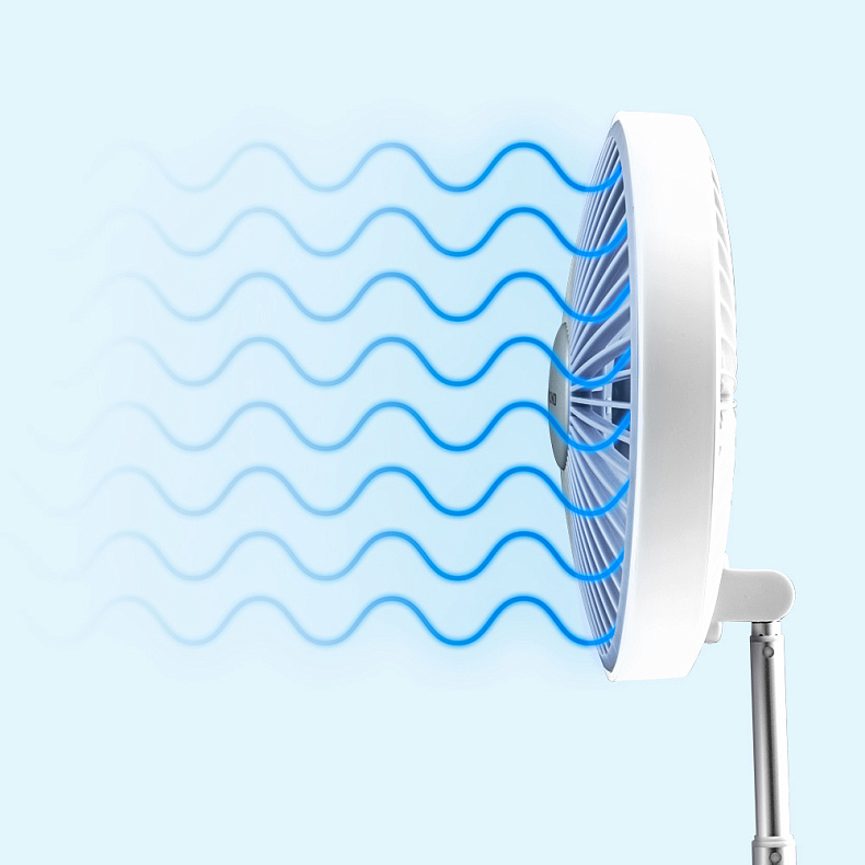 Вам не придется беспокоиться о поисках розетки — мощный аккумулятор в 7200 мАч позволяет вентилятору работать на одном заряде целые сутки.