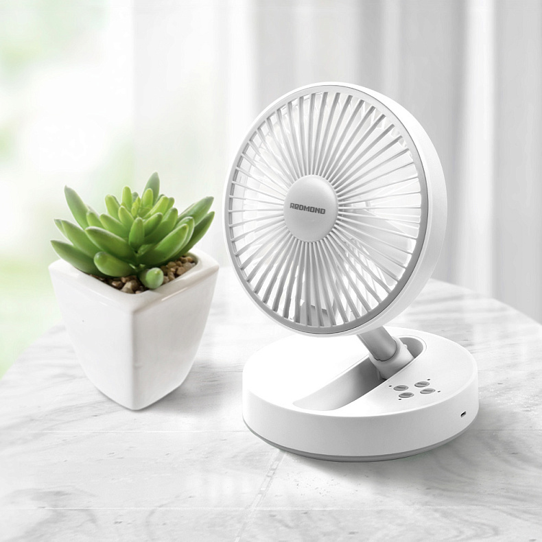 У нас сейчас жара, поэтому мы решили приобрести этот маленький спаситель. Сын использует его днём на столе или под столом, так как компьютер сильно нагревается. Ночью вентилятор работает в спальне, и его уровень шума не мешает засыпать. Он может работать как от аккумулятора, так и от сети во время зарядки. Очень удобный таймер, который мы ставим на ночь, чтобы вентилятор отключался сам. Легко складывается и раскладывается в три положения. Хотя он не вращается, его можно регулировать вверх-вниз и направлять в нужную сторону. Устойчивый, без скрипов и посторонних звуков. Морской бриз пока для нас как развлечение). Рекомендуем!