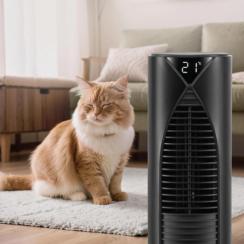 Благодаря мощному потоку воздуха и размеру воздуховода 14 см вентилятор эффективно охлаждает пространство на расстоянии до 6 метров. Необязательно ставить вентилятор слишком близко к себе, чтобы почувствовать прохладу.