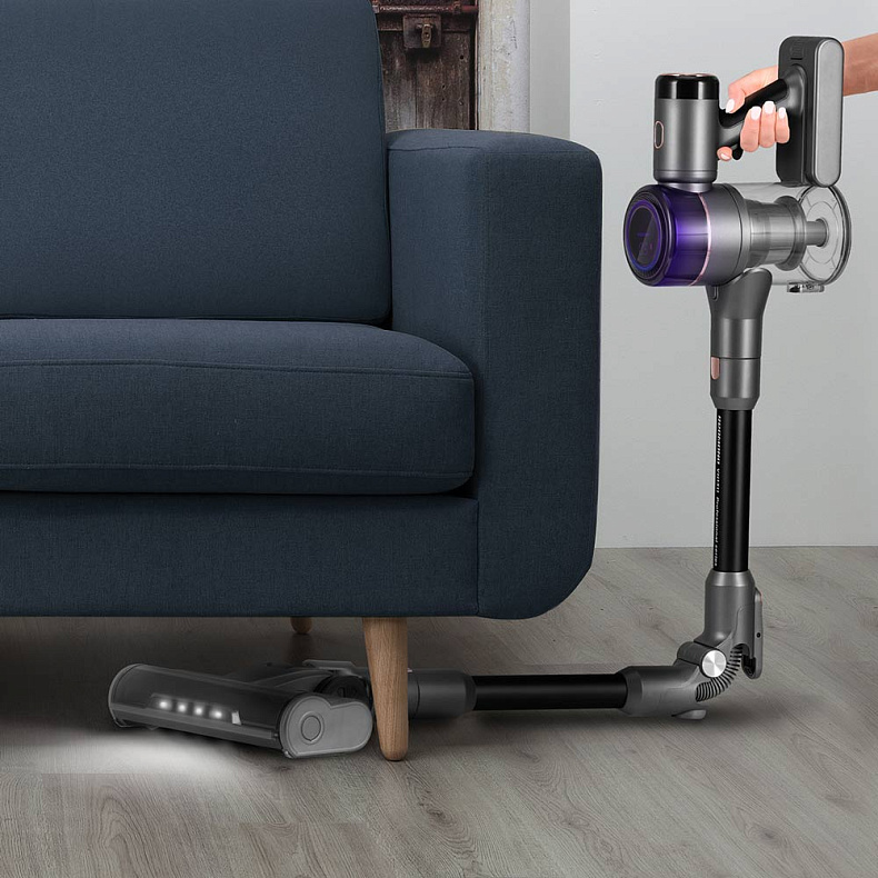 Идеально выполняет функции и мойки, и пылесоса. Особенно впечатлила насадка для влажной уборки: благодаря вращению, она справляется с пятнами и грязью намного эффективнее, чем традиционная тряпка. Гибкий корпус легко раскладывается нажатием кнопки, что позволяет добраться до труднодоступных мест под кроватью и диваном без необходимости наклоняться.