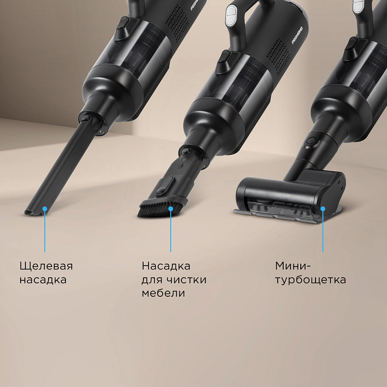 Пылесос в компактной сборке позволит навести порядок в автомобиле или на верхних полках. В комплекте 3 насадки: мини-турбощетка, щелевая насадка, насадка для очистки мебели.