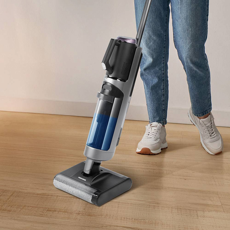 Очень мощный, манёвренный и удобный. Одновременно чистит и моет полы. Особенно нравится мощность всасывания - удаляет без проблем мелкую пыль и шерсть домашних любимцев. Зарядки хватает надолго, подходит идеально для ежедневной уборки.