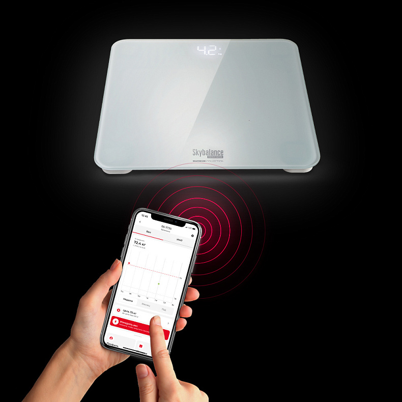 Скачайте приложение Ready for Sky REDMOND, чтобы воспользоваться всеми возможностями умных весов. Прибор измерит вес, проанализирует, сохранит данные и построит наглядный график изменений вашей массы тела.