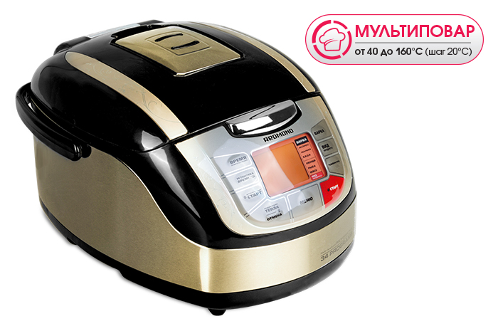 Мультиварка RMC-M4502– первая мультиварка, в которой инженеры REDMOND реализовали программу «МУЛЬТИПОВАР». В мультиварке М4502 программа «МУЛЬТИПОВАР» дает возможность самостоятельной установки температуры в диапазоне от 40 до 160°C с шагом изменения 20°C и времени от 5 до 12 часов при шаге изменения 5 минут.