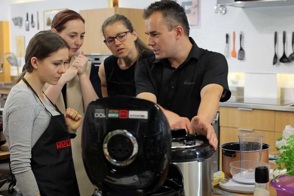 После такого творческого знакомства представители бренда REDMOND провели презентацию, рассказав участникам о возможностях мультикулинарии и новых линейках продукции. Затем каждая команда получила в свое распоряжение рецепты, ингредиенты и полностью оборудованные рабочие места. Готовили блогеры в мультиварках RMC-M90E и мультиварках-скороварках RMC-M110E.