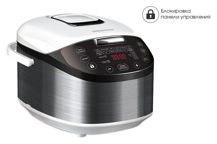 Мультиварка REDMOND M170 особенно подходит семьям с маленькими детьми – можно воспользоваться функцией блокировки панели управления от несанкционированного использования в любой момент: в режиме ожидания или после начала работы программы. В комплект М170 входит еще одна новая разработка REDMOND – контейнер для приготовления на пару с регулируемым объемом.